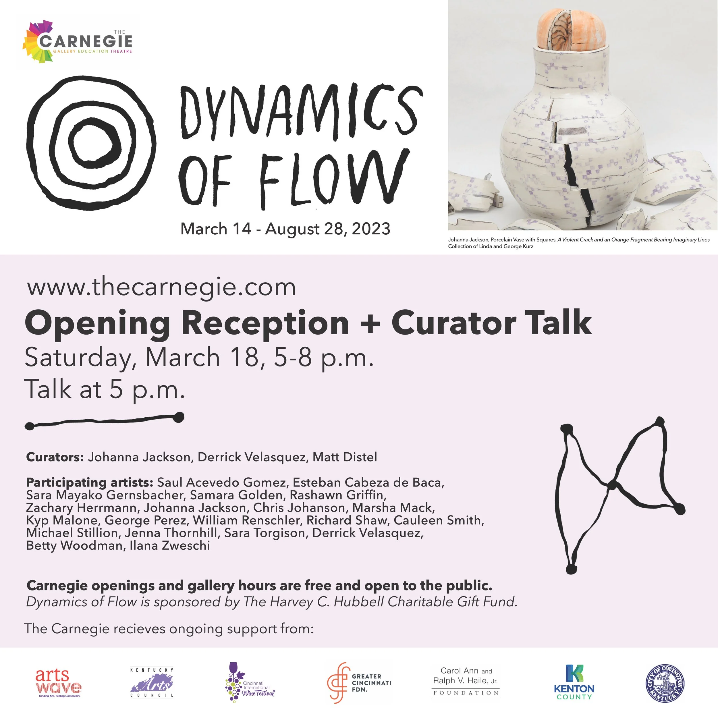 Dynamics of Flow consists of sequentially selected objects and bodies of work alternating between ceramics and painting. The curators, Derrick Velasquez, Johanna Jackson, Matt Distel (IKT member), will individually select projects that respond to the previous selection. The process involved will reveal a dialogue between specific objects and, broadly, between painting and ceramics. Embrace expansive definitions of these media, the exhibition will look to push both the similarities and differences between them. A curatorial game of telephone operating on a loop. Dynamics of Flow coincides with the National Council on Education for the Ceramic Arts holding their annual conference in Cincinnati.